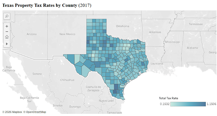 Texas is known for having no state income tax, but that trade-off comes with higher property taxes. According to the Tax Foundation, Texas ranks among the highest in the country for property tax rates.